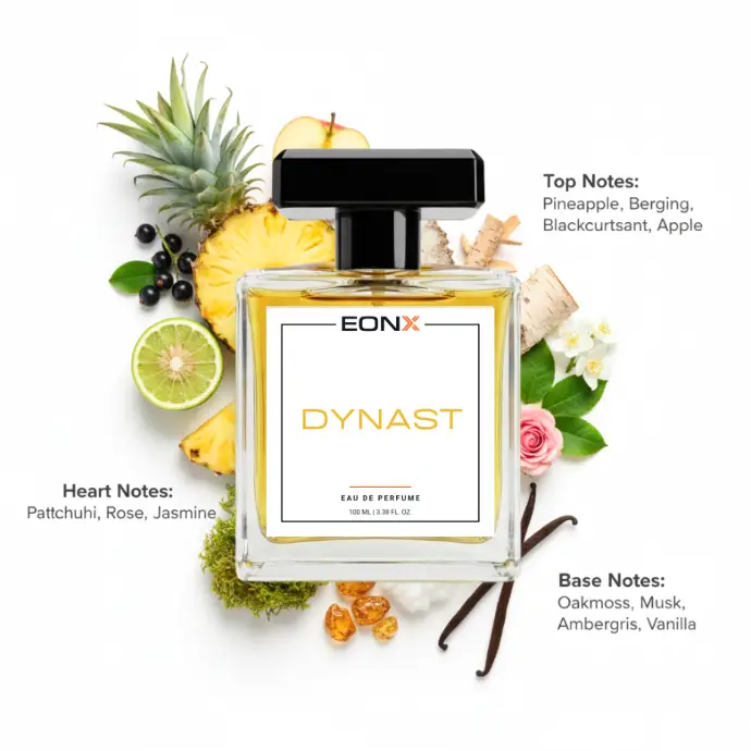 Dynast is a luxurious fruity-woody masterpiece crafted for the unstoppable. Bursting with pineapple and bergamot, it begins bright and energetic. The smoky birch and patchouli give it a masculine punch, while oakmoss, musk, ambergris, and vanilla create a long-lasting, addictive trail.